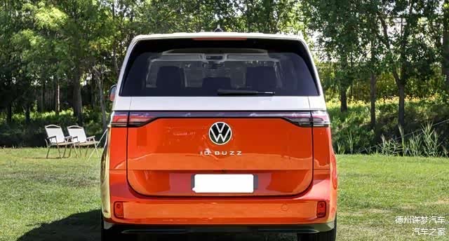 视线来到车尾,ID.Buzz的车尾形态偏方正,好在上半部分有一定弧度,看起来不至于太像面包车。贯穿尾灯是它的常规操作,为拥有更高视觉完整度,下包围处包裹车身同色面板。看起没啥问题,但整体形态摆在那里,总会让人感觉到一种廉价感。至于在内饰设计部分,同样没什么好说的,只不过不同车型的内饰配色会有所区别,主打的便是一个简约大气。