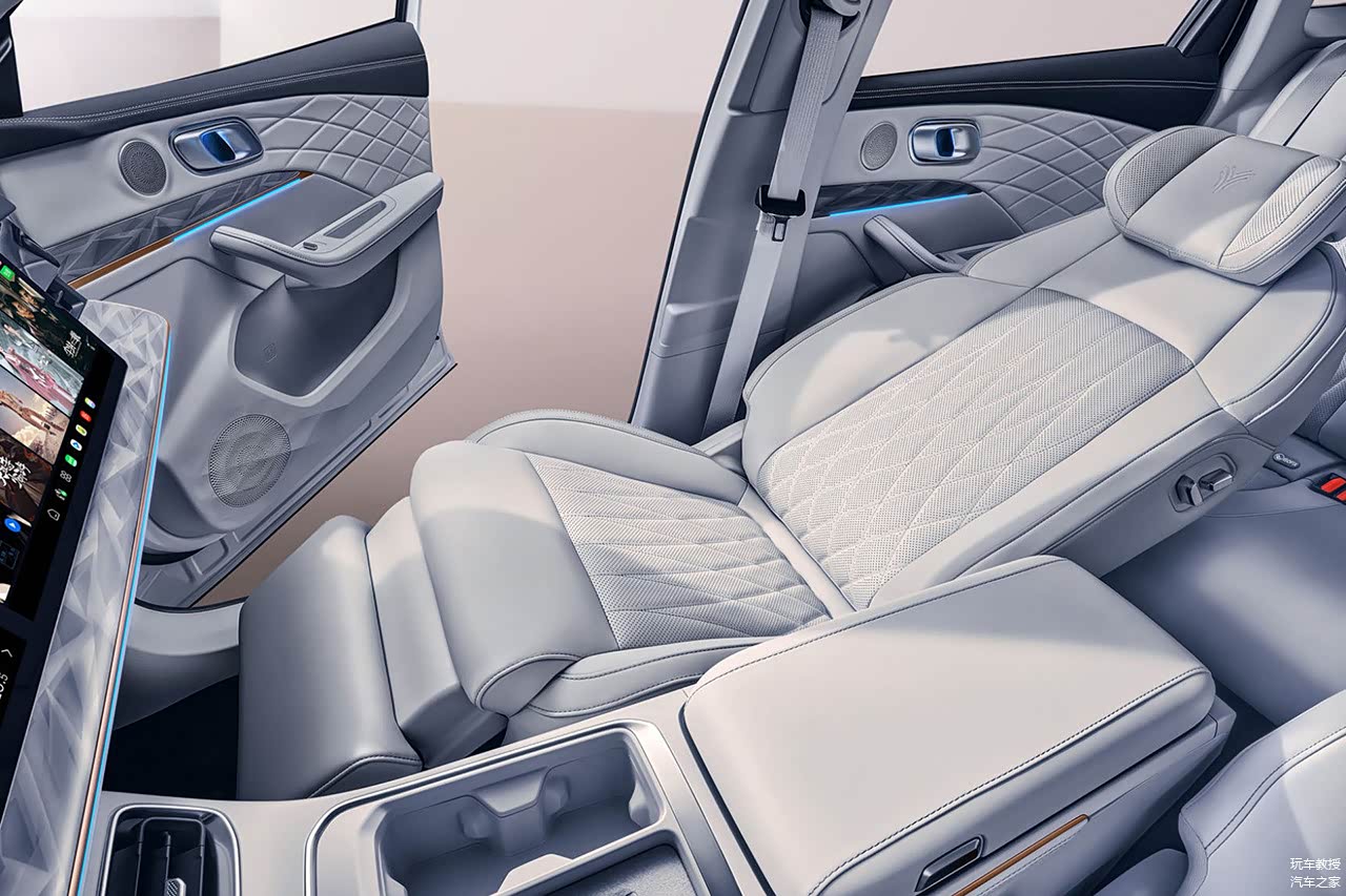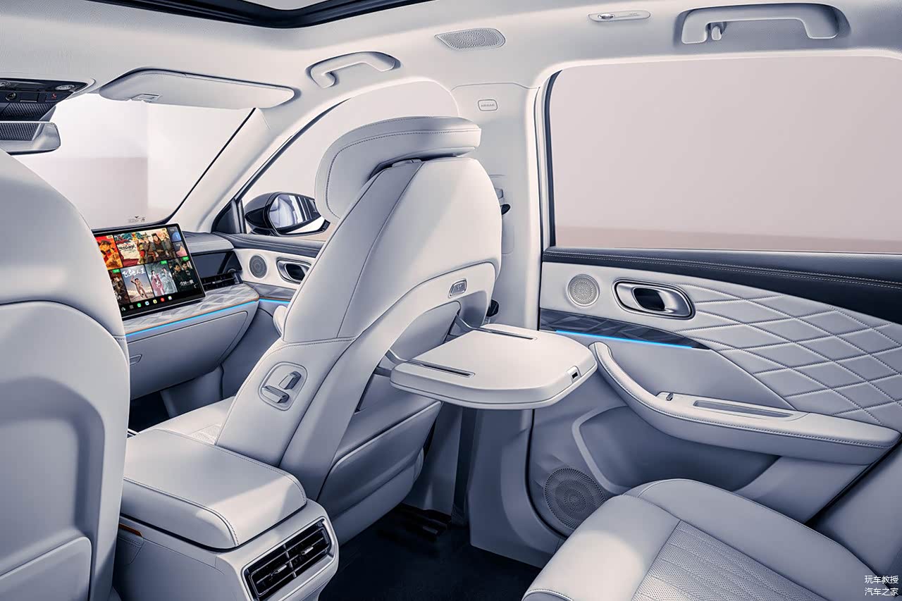 另外就是舒适性配置方面,中高配车型还是更有优势,多出了前排50W无线快充、前排座椅舒适功能(通风、加热、按摩、头枕扬声器)、第二排座椅加热、后排小桌板、氛围灯等,顶配则比中配多了15.6英寸的副驾驶娱乐屏幕以及车载冰箱,售价比中配贵了1万元。整体来说,教授认为中配车型性价比最为均衡。