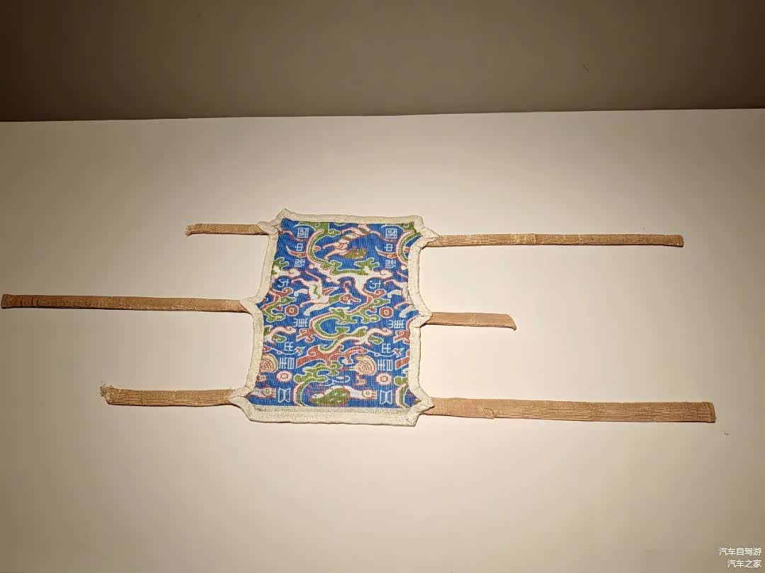 有关这张织锦的传奇故事,我们是从和田博物馆中读到的。博物馆不仅是保护和传承人类文明的重要场所,更像是连接过去、现在、未来的一道桥梁,因此我们在活动的间隙集体去了博物馆,系统地温习和田故事。进博物馆大门后,即可欣赏大厅墙壁正中的护臂纹样,大家既惊叹它的图案及色泽,又被这千年织锦上的占卜内容所震撼,它的神秘来历更是勾起了所有车友的兴趣。
