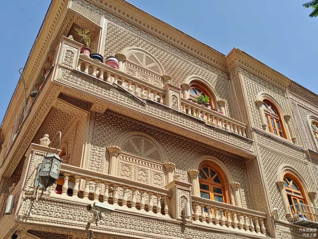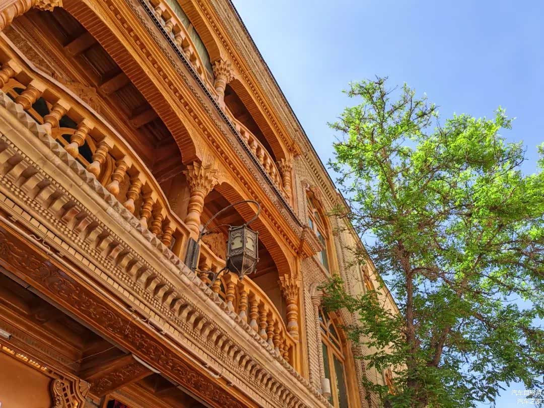 走进团城,“阿依旺”式建筑在阳光的映照下光彩夺目,暖色调的建筑在蓝天的映衬下,线条清晰、色彩明快。无论是建筑转角的廊柱,还是民居阳台的装饰,都成了车手们摄影创作取景的素材。精致的拼花砖墙与木雕门窗,散发极其浓郁的民族风;街道特色的店铺与传统美食,让大家目不暇接、垂涎欲滴。在团城,饱眼福与饱口福可以兼得,是了解和田历史文化和地域特色的绝佳之地。