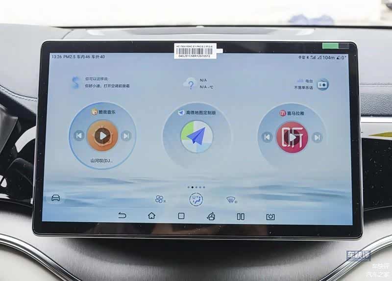 宋PLUS DM-i车机UI界面首页显示内容也比较丰富,常用的导航、试听软件放在了比较显著的位置。跟荣威D5X DMH不同的是,宋PLUS DM-i将操作栏设计在了屏幕的最下方,车辆设置按钮却放在了屏幕左下方,首次使用可能需要熟悉一下。