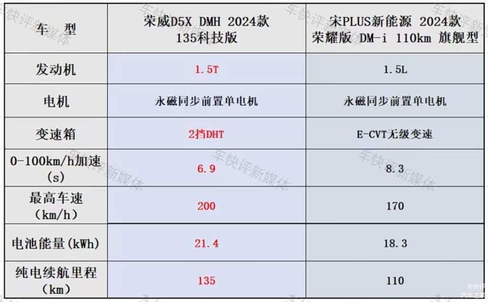 再加上荣威D5X DMH的2挡DHT变速箱加持,动力表现毫无疑问是要好于宋PLUS DM-i,零百加速达到了6.9秒。