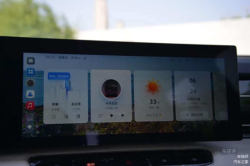 跟外观设计一样,荣威D5X DMH车机的UI设计简洁规整。导航、音乐、天气以及行程都在首页第一屏。在屏幕左侧的固定栏上,除了可以直接进入到设置和空调控制界面,同样也保留了导航和音乐这两个最为常用的功能键,很人性化的设计。