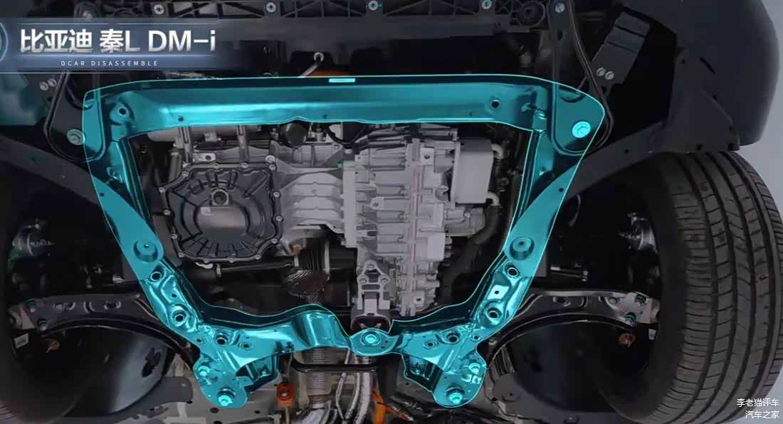 底盘方面,副车架部分,秦L用上了全框式结构,整体防护和舒适度会更出色一些。吉利银河L6用的是元宝梁设计,在副车架下方有调节共振的小补丁设计。从设计方面来说,秦L的优化力度更大,在副车架开发时就考虑到了共振规避的问题。