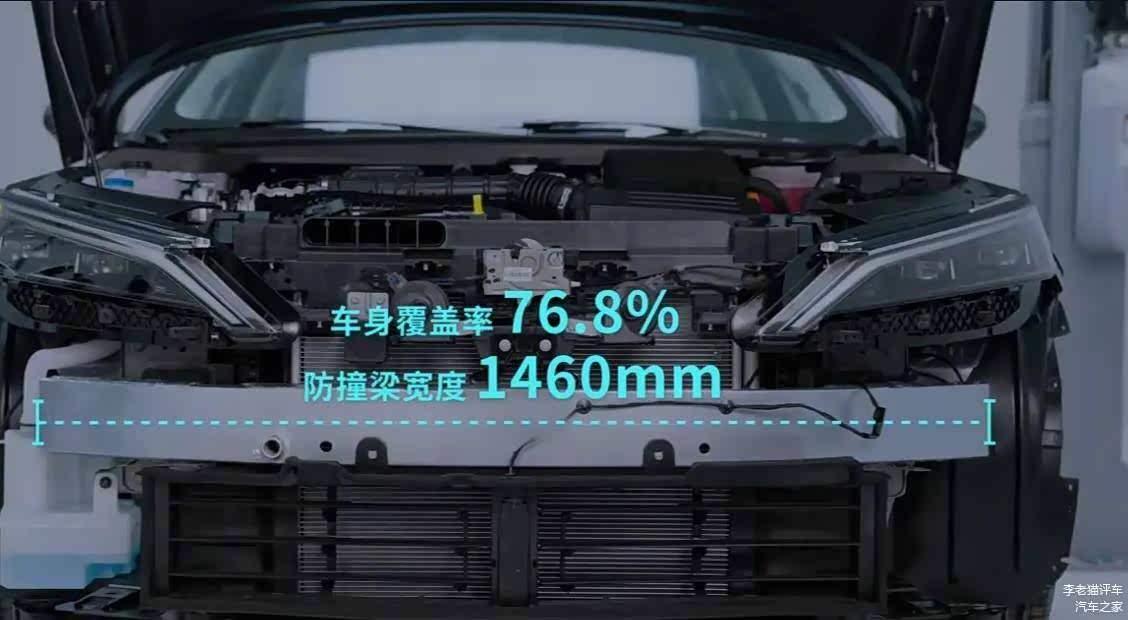 前防撞梁部分,比亚迪秦L前防撞梁宽度1460mm,覆盖率在76.8%。吉利银河L6防撞梁宽度1345mm。两台车防撞梁都采用钢制材料,也做了防锈处理。不过从宽度上来说,秦L占点优势。除了主防撞梁之外,其下方还有一个保护行人的副防撞梁,另外主防撞梁两侧多了两个副吸能盒。