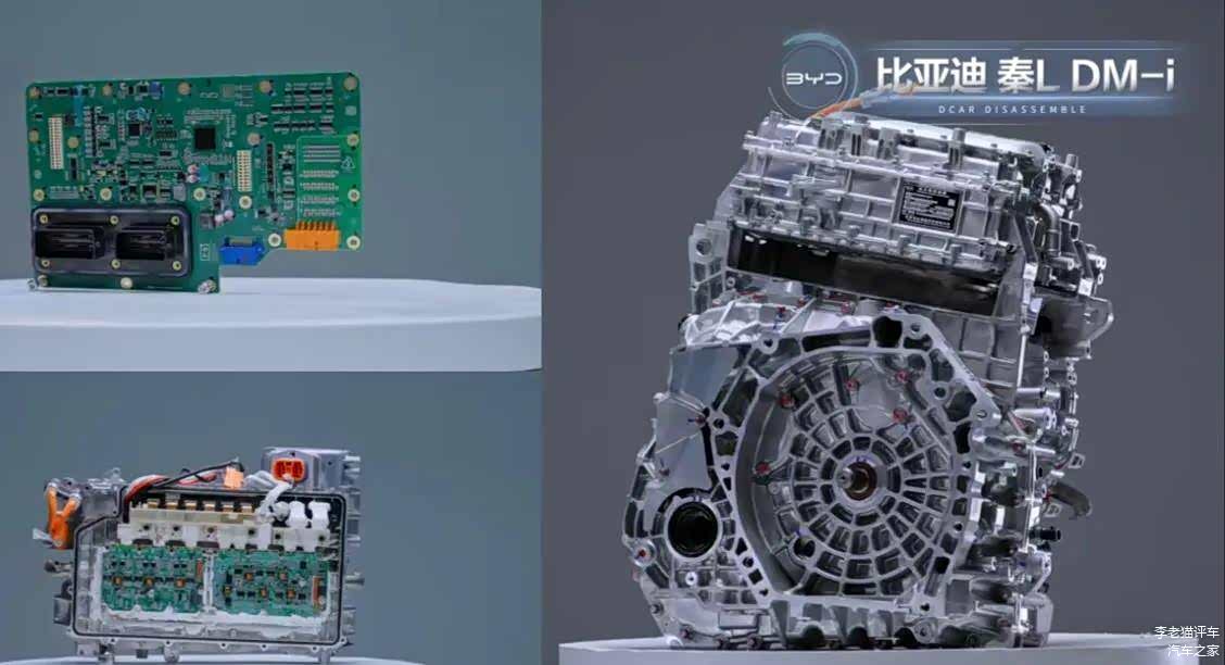 电控方面,比亚迪秦L这套电控系统集成度非常高,主控板除了控制发电机和驱动电机单元外,还集成了VCU功能,像加速,刹车,电池热管理等都可以在这里实现控制。另外,像控制器模块也集成了车载充电器,直流-直流变换器,高压配电单元等。秦L主控芯片采用日本瑞萨的32位芯片,算力比较强。电控系统的高度集成的好处在于体积更小,功率密度容易得到提升,成本也能得到控制。吉利银河L6电控只能控制变速箱的功能,并没有VCU大脑的集成,相对而言比较常规。