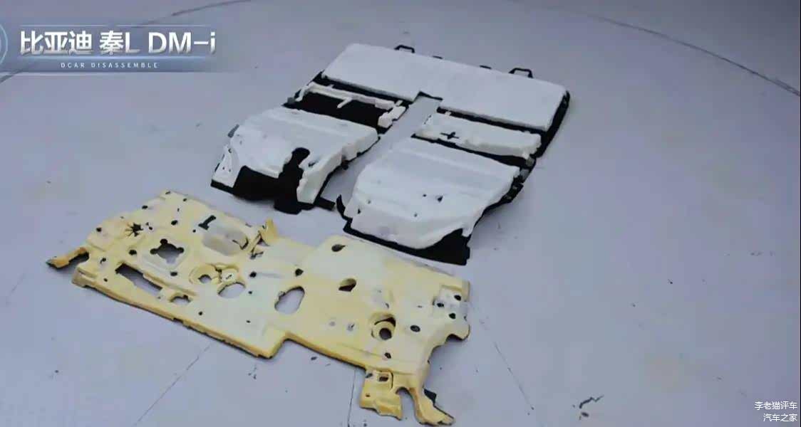 软装部分,两台车都用了成本较高的原生棉,用料都比较厚道。在地垫下方,防火墙,门板等位置都有面积较大,厚度在线的隔音棉和发泡棉等材质。整体相比差距不大,但地垫下方秦L的隔音棉为整块设计,拼接更少,隔音效果会更好一些。