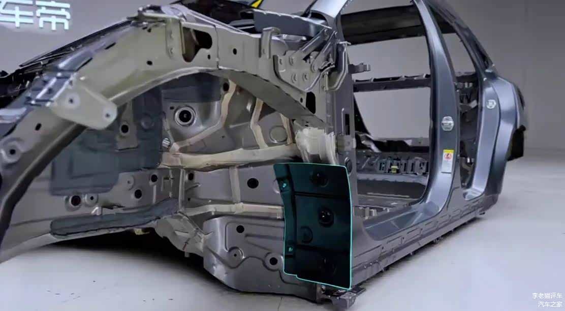乘员舱部分,两台车车内横向加强梁都做得非常均匀,主副驾驶的保护一致。在主纵梁和上纵梁位置都做了外扩和延长设计。而秦L这边上纵梁的长度更长一些,而且在两侧前轮拱后方做了专门的钢制挡板(左右都有),以减小碰撞对乘员舱的侵入。这个部分,秦L有一定优势。