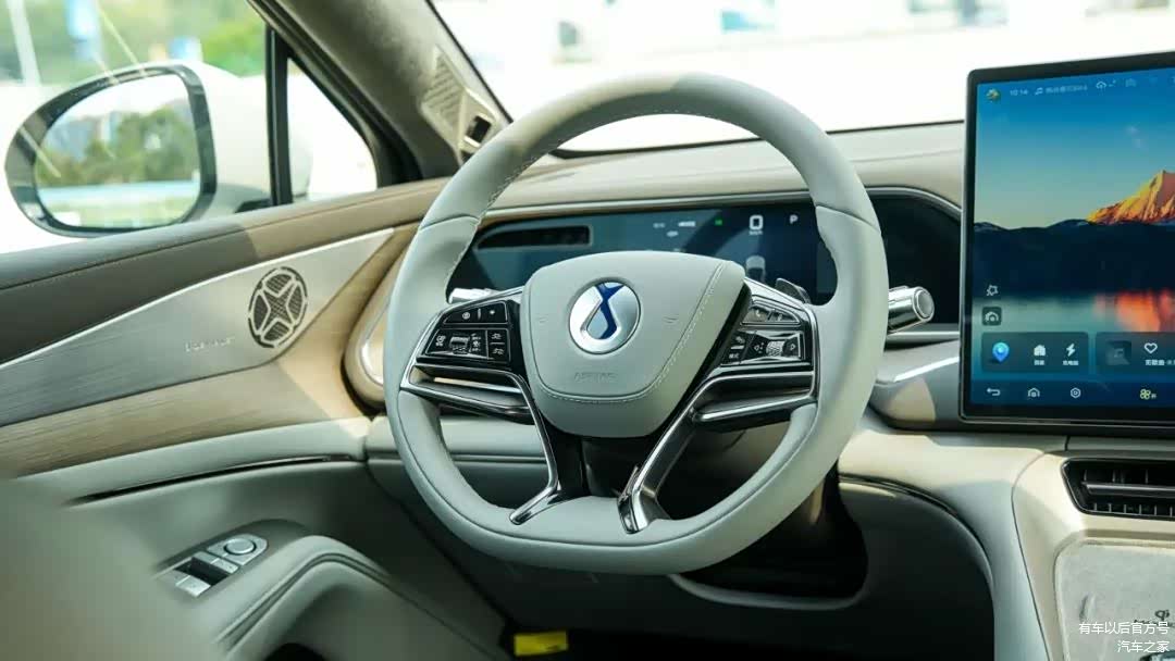 来到车内,全新腾势N7的变化真算不上大,整体设计风格是和之前版本保持一致的,17.3英寸中控屏、10.25英寸液晶仪表、10.25英寸副驾驶娱乐屏都是在的。只是对部分科技配置进行了设计。方向盘调节从过去的手动变成如今的电动。同时,车辆还升级了流媒体后视镜。