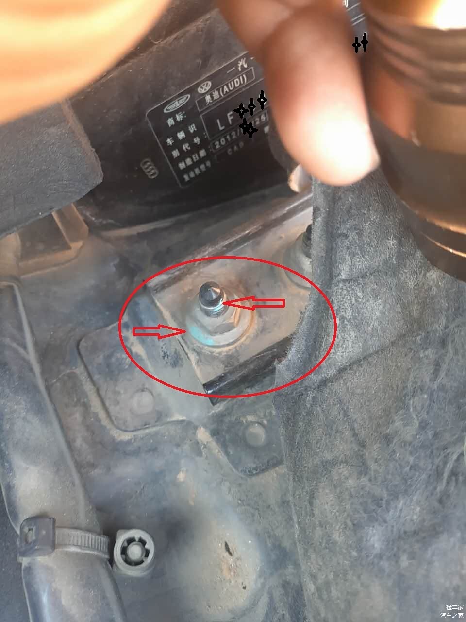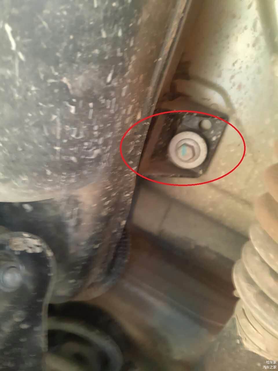 发动机舱的平衡杆有明显的拆装痕迹,车辆在生产商装配的过程中螺丝都会被点上点漆,来确定螺丝有没有上紧。至于为什么要拆平衡杆还需要我们继续往下看。