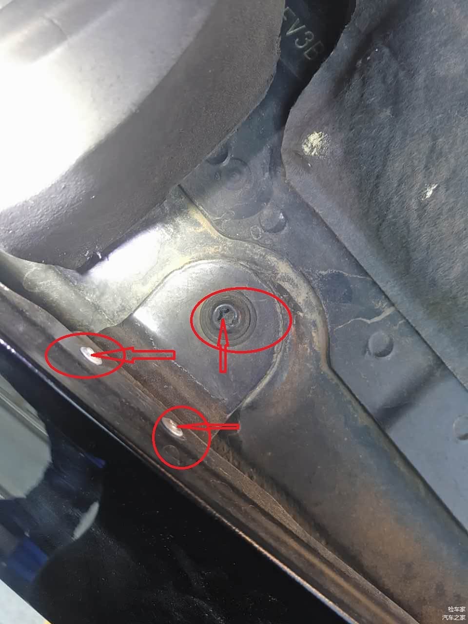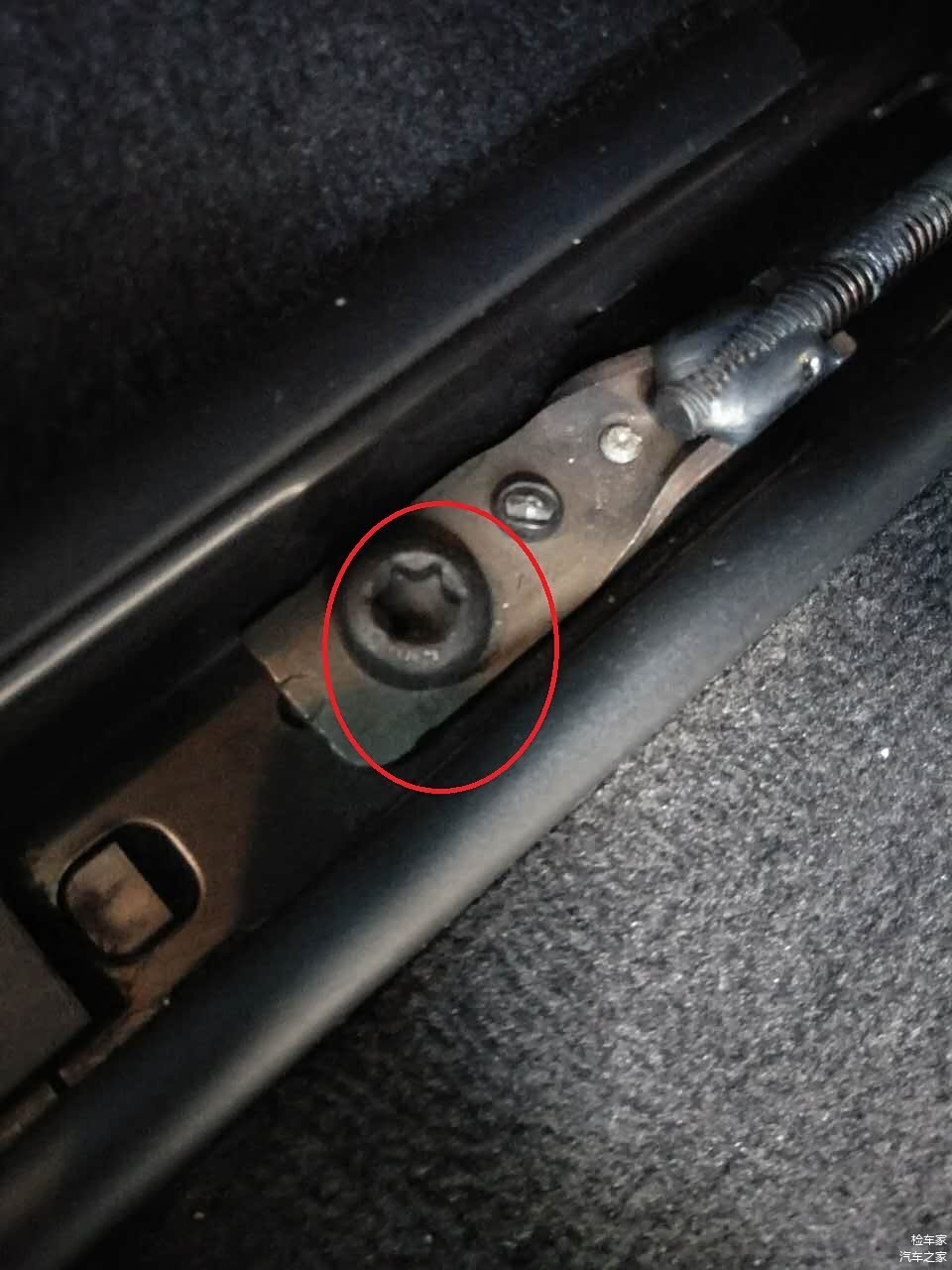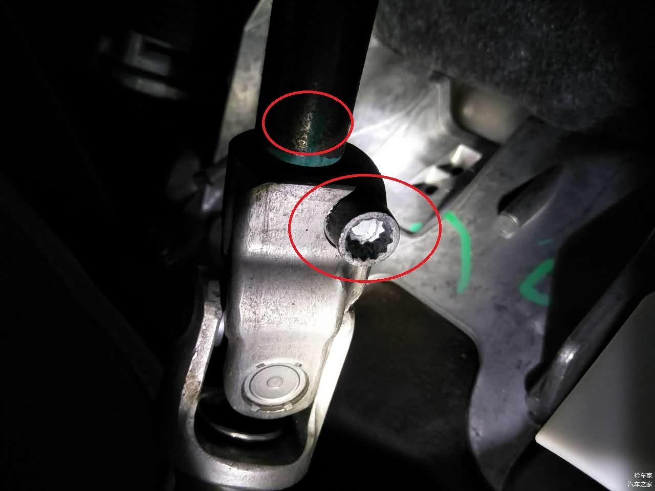 当我检测到转向管时发现 螺丝拆卸 上端有生锈的痕迹。
