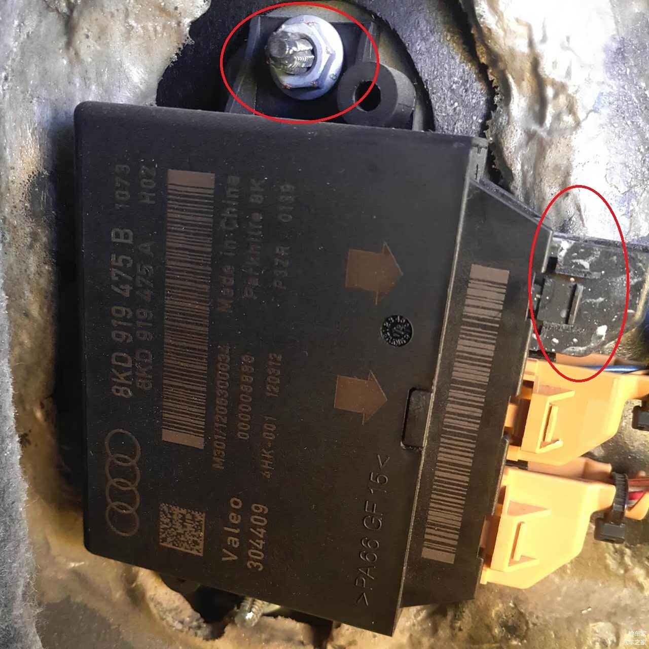 小编在检测后杠灯的破裂有没有导致行李箱变形的时候发现一个重大问题,那就是电子模块的插头很明显有泥沙的存在,螺丝也有拆卸痕迹,此车疑似涉水车。还需要检测其他地方才可以确定。带着疑问小编开始对内饰进行检测。