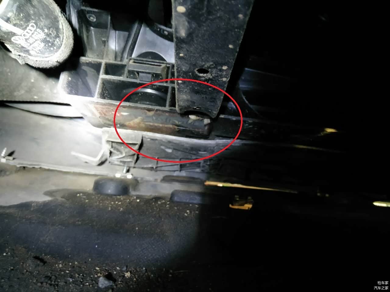 发现座椅电机也有泥沙的痕迹,再往下看。