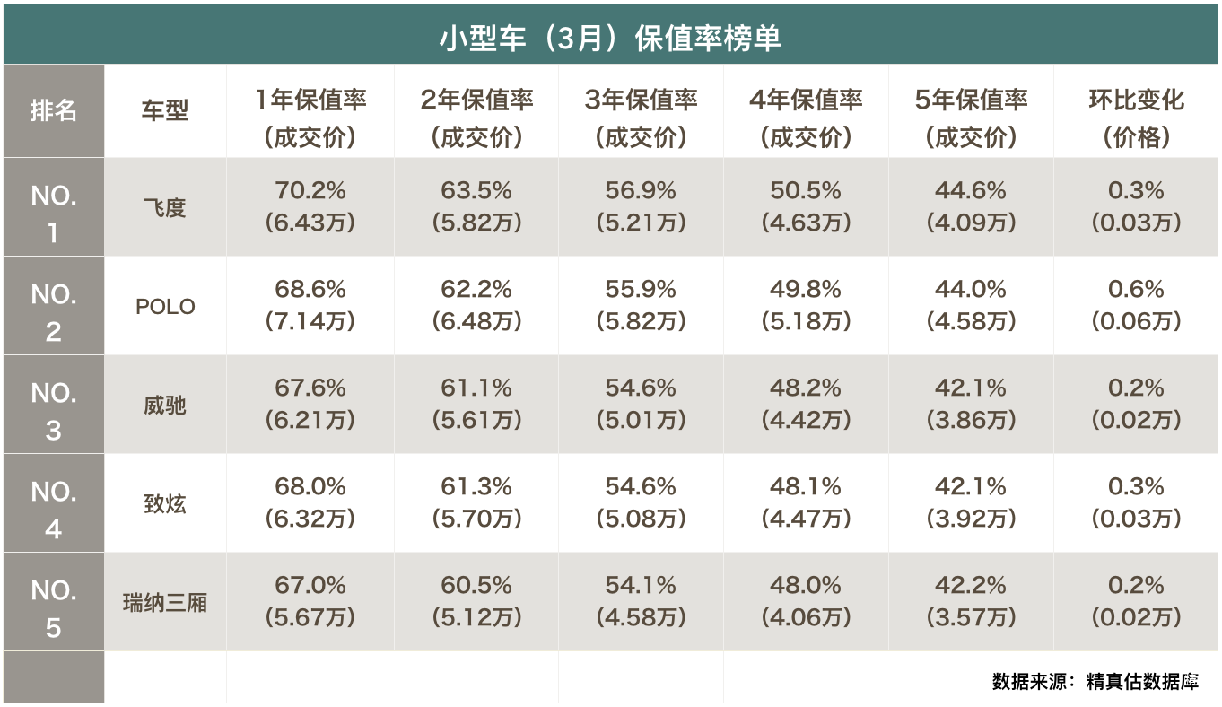 小型车(3月)保值率分析: