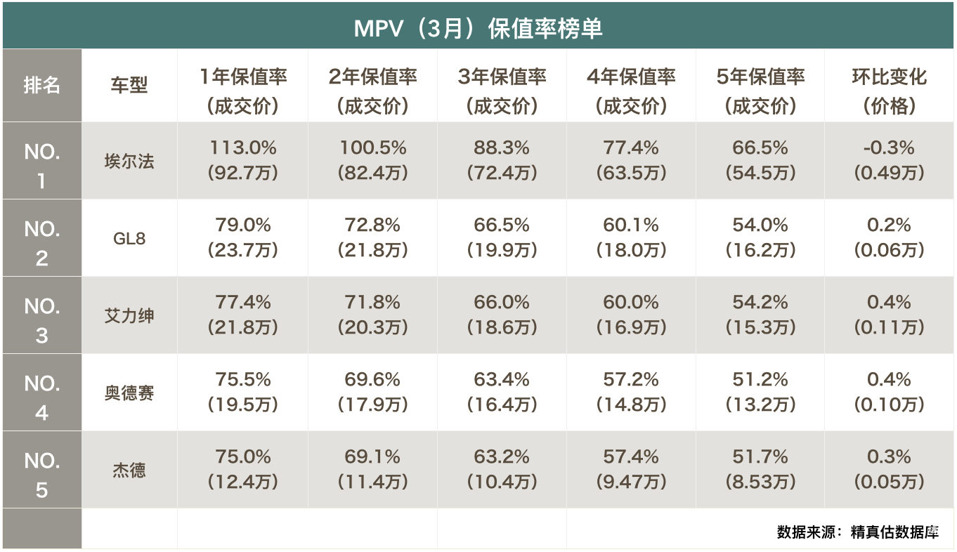 MPV(3月)保值率分析: