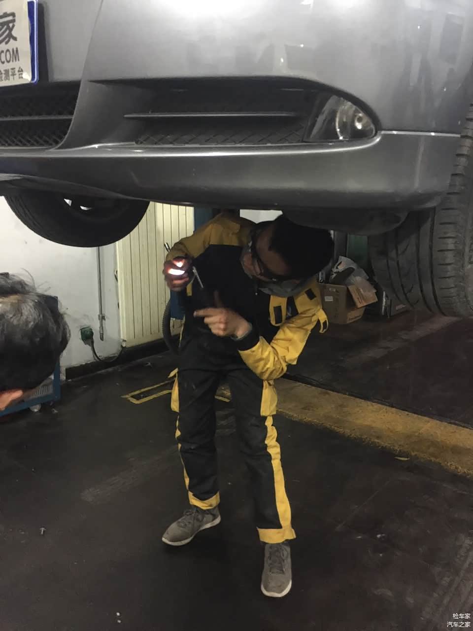其实要是检测一个其他车,小编我这50块钱也能忍了,但是这车有底护板,用举升机升起来小编可以勉强转进去,但是拆不了底护板还是白搭。