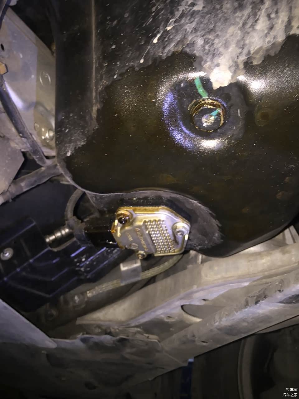 好吧,这是一台真宝马。不为别的,因为它真的在漏油,这是油位传感器漏油。