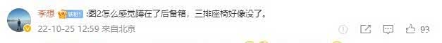 官图中展示的是一家三口的用车场景,图片中的父亲位于第三排,位置明显比较高,给人一种比较奇怪的感觉。对此,理想汽车CEO李想犀利点评:“怎么感觉蹲在了后备箱,三排座椅好像没了”。