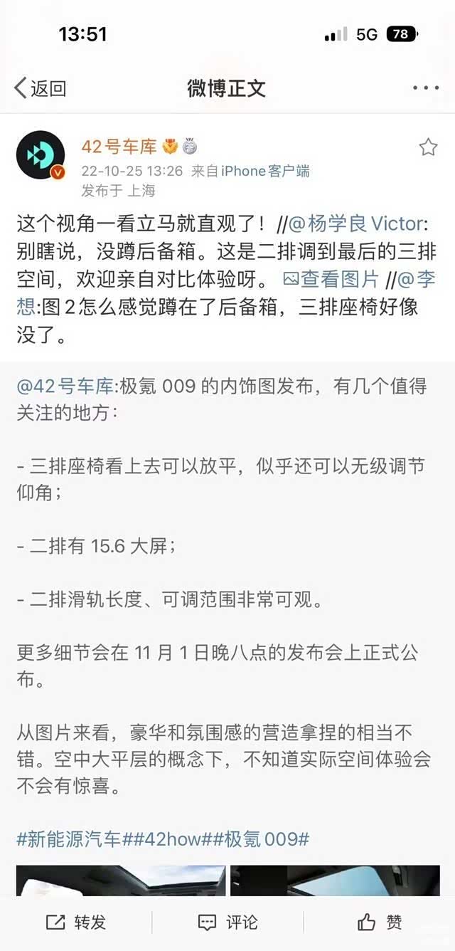 相比售价来讲,其实大家更关心的是极氪009的空间表现,毕竟此前也曾引发过三位大佬隔空辩论。