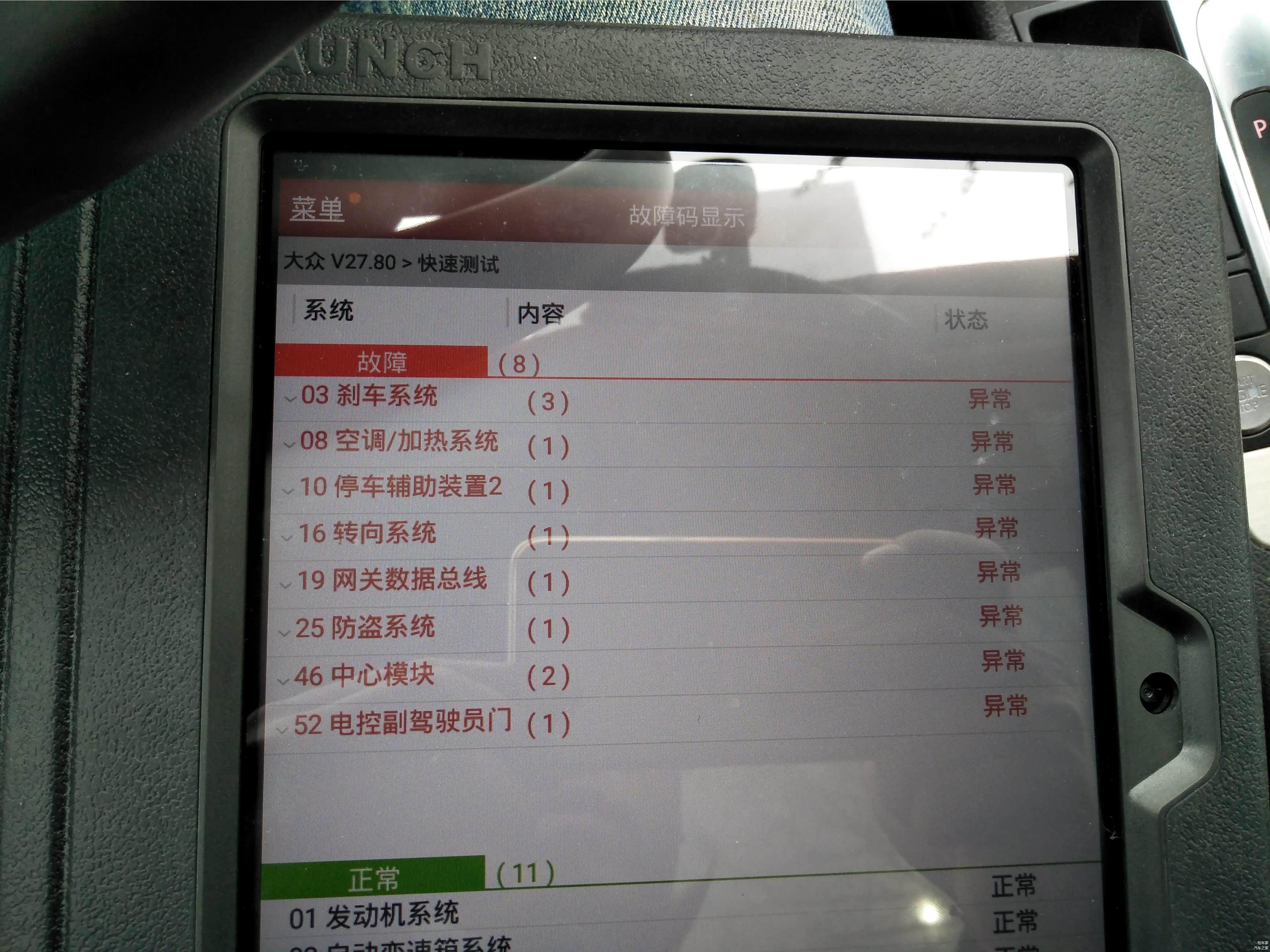 经过OBD检测发现一堆故障码,看到这一堆故障码,更确定这是洗过澡的车了。小编把故障一一记录,正要去找车主试,车主来了,小编也没能说什么,去找车主说下路试,这时车主来了,这也省得小编打电话了。车主带小编到一条没有车的路上,飚了两圈,回来直接开到指定修理厂进行上架,接下来就是进行底盘检测了。