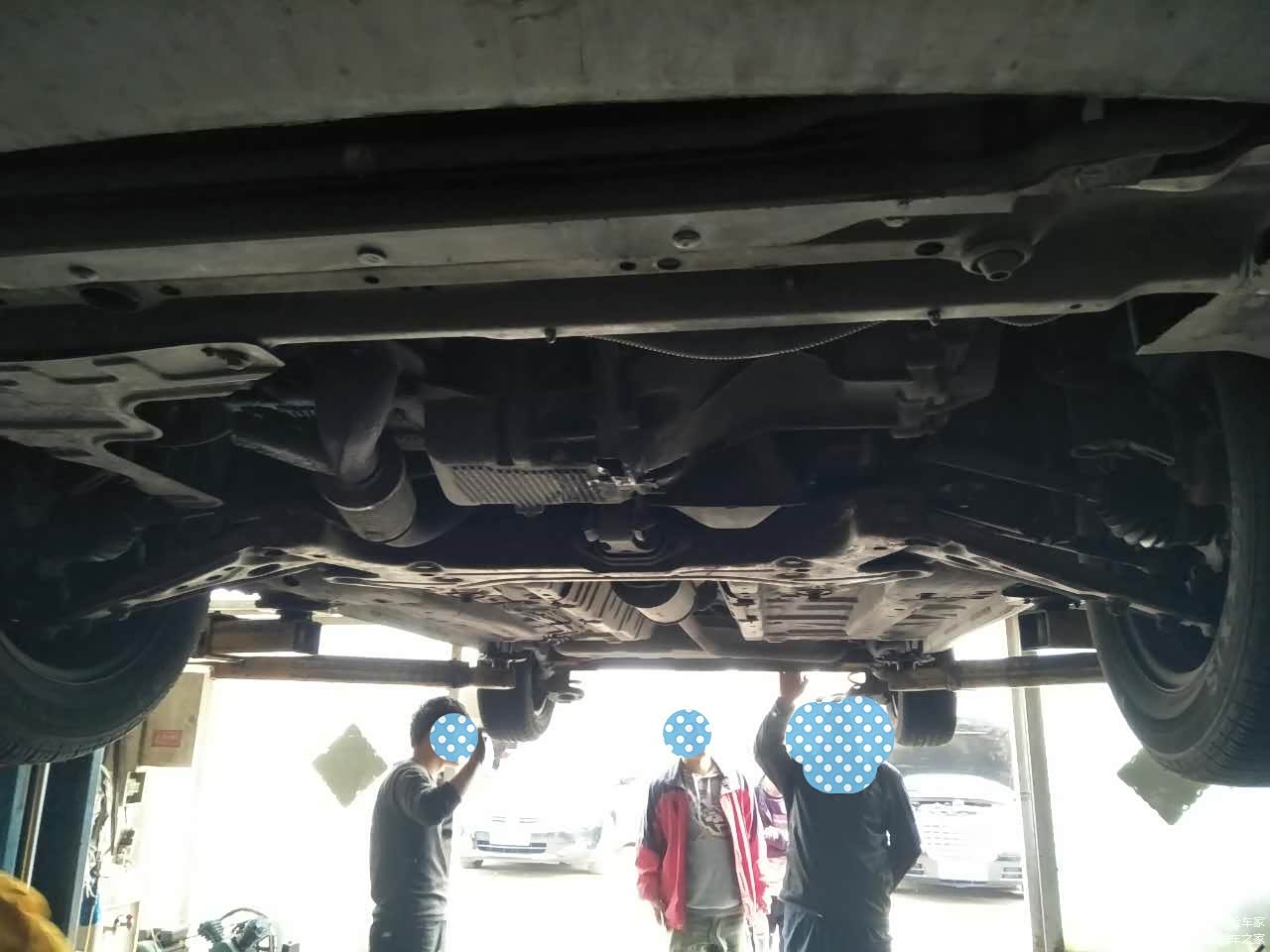 升起车来,发现没有护板,这倒是好事,从前到后看了两圈,也没发现问题,看到轮胎时发现,轮胎都到该换的年龄了,轮胎磨损和刹车盘都和公里数不符合,再次说明该车调表的嫌疑,小编和买家把车况说了下,这时车也落下来了,车主把车开到外面,这时小编的专车也到了,该和买家道别了,然后上专车该去车站了。