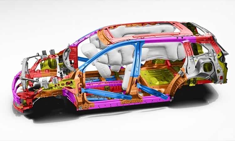 车身层面,该车采用六环六纵笼式车身结构,高强度及以上钢材应用比例达到78%,A/B柱、底部横梁等关键部分热成型钢材强度1500Mpa,同时还采用超厚双前防撞梁设计,被动安全属性拉满。