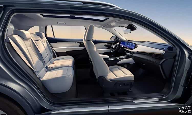 内饰部分,全新一代昂科威PLUS在新一代VIP智能电子架构基础上融入eConnect智能座舱设计,标志性的EYEMAX 30吋/6K弧面屏依旧非常炫酷,同时内置高通骁龙8155芯片,除了有丰富的多媒体生态服务,其AI语音能够做到0.3s的快速响应,并且支持最长10条连续指令识别。