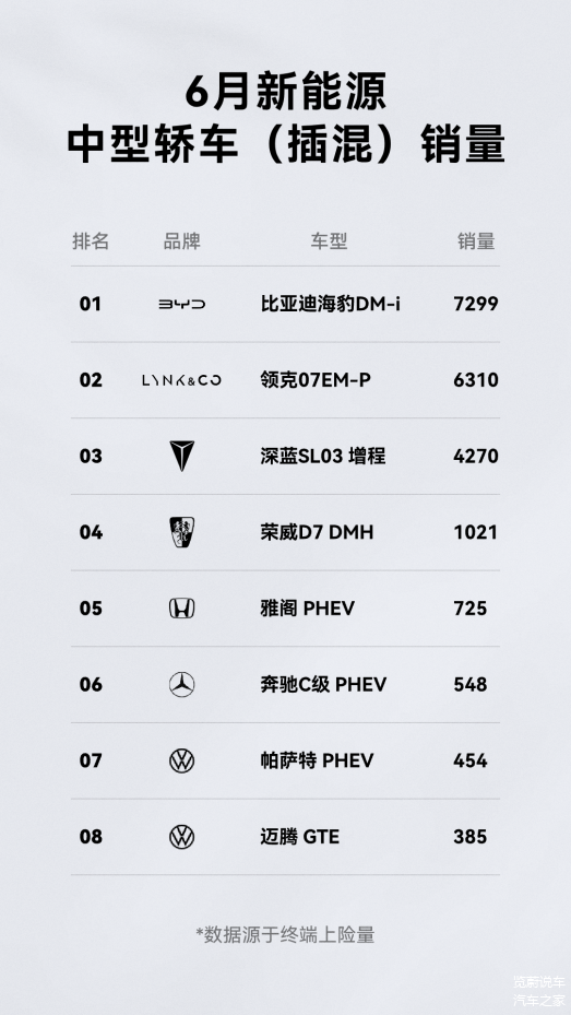 在6月新能源中型轿车(插混)销量排行榜上,领克07 EM-P以6310辆的月销量,勇夺榜单第二位,成为了市场上的热门选择。相信领克也将继续在新能源汽车领域深耕细作,满足消费者日益增长的需求,为推动汽车行业的可持续发展做出更大的贡献。