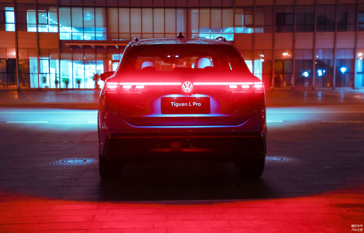 途观L Pro拥有发光前格栅以及前后发光LOGO,这是同级别的宝马X 1和奥迪Q3所不具备的。而奥迪引以为傲的豪华大灯,在科技进化的年代,优势也不再明显了。奥迪Q3的矩阵大灯熠熠夺目,途观L Pro的IQ. Light 高分辨率智慧投影大灯更有智慧灯光的加持,比如投射光毯点亮本车道,变道光毯铺满隔壁车道,窄路投射光柱显示车宽,离家或回家迎宾动画灯效,不仅仪式感满满,安全实力加分,科技感更是爆棚。