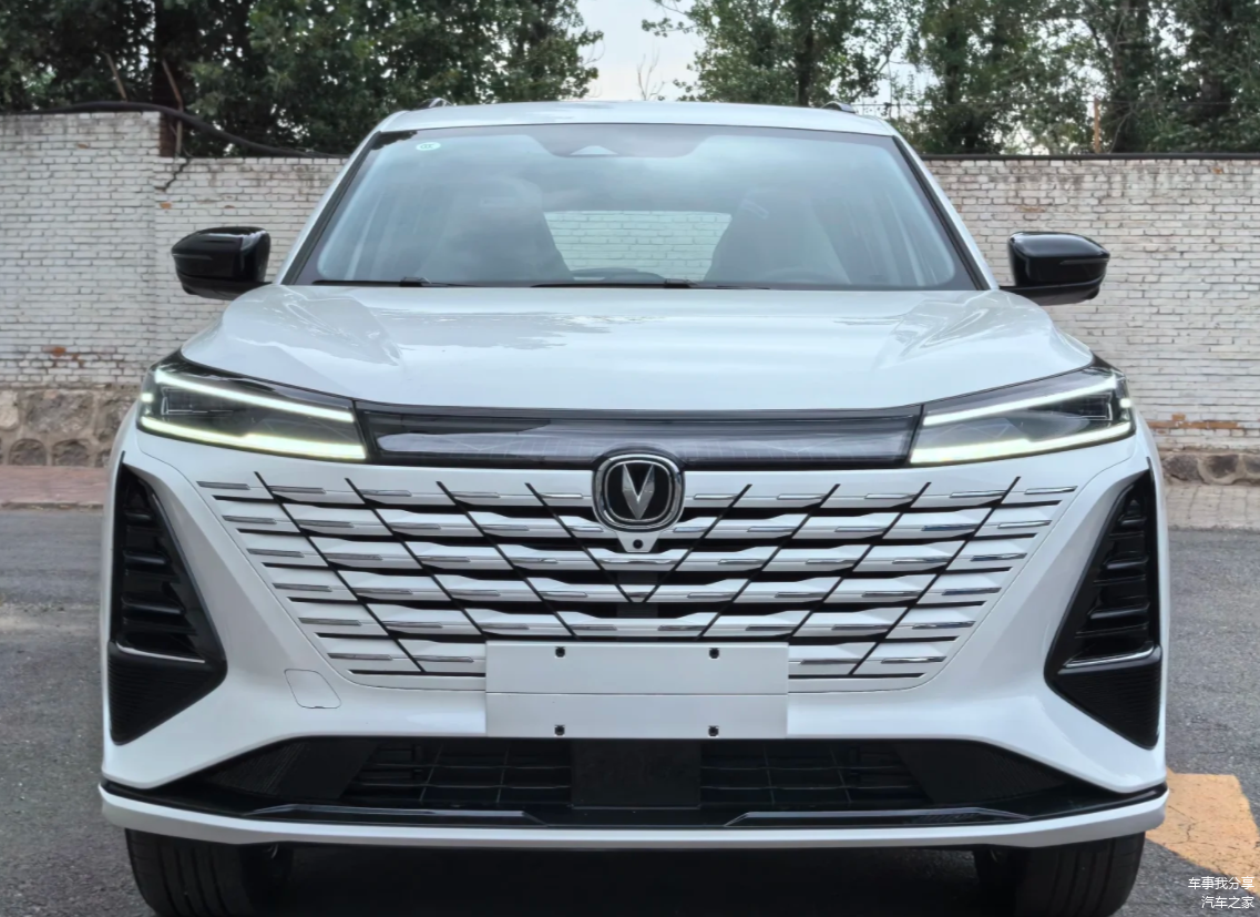 第三代长安CS75PLUS在外观设计上采用了全新的设计理念,呈现出一种科技与霸气并存的视觉效果。其前脸采用了无边界星瀚网格进气格栅,这一设计不仅拉伸了整车前脸的视觉宽度,还赋予了车辆一种强烈的视觉冲击力。格栅的单元体设计独具匠心,由中心向两侧逐渐展开,营造出强烈的光影效果。配合全LED晶体脉冲前大灯,当车辆启动时,前大灯会呈现出脉冲式闪烁的独特光效,大大提升了车头的科技感。车身侧面,长安CS75PLUS延续了19英寸多辐铝合金轮毂的设计风格,与整车线条相得益彰,展现出一种运动而稳健的姿态。