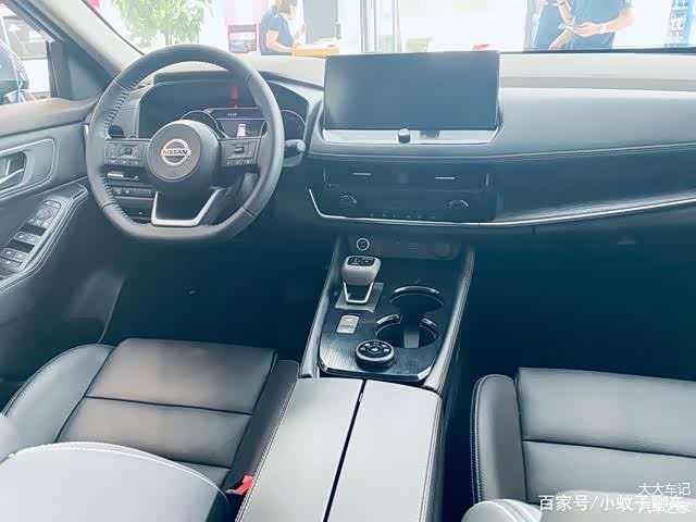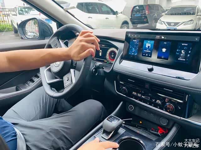 来到车内,可以看到全新一代奇骏的内饰照比老款车型有了质的提升,新车采用全新造型的三幅式方向盘以及电子挡把,并配备12.3英寸悬浮式触控液晶屏,内置Nissan Connect超智联2.0系统,大部分功能都可以通过操作屏幕来完成,而且运行十分流畅,语音系统可以通过说“你好,日产”来唤醒,能够对多媒体、电话、导航、空调以及天窗进行控制,识别率非常高,这样在开车的时候能避免注意力被分散。另外在用料方面新车也是比较厚道的,中控台上方以及手肘经常触碰的区域都做了皮质软包,并搭配大面积木纹饰板,档次感营造得也比较到位。