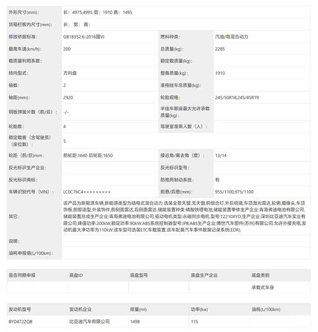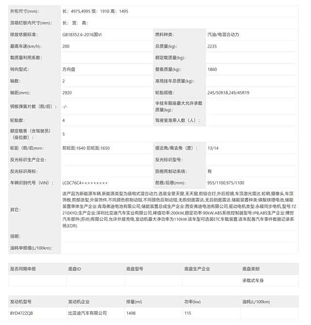 据媒体报道,新款比亚迪汉车型的申报图已在工信部目录中曝光。