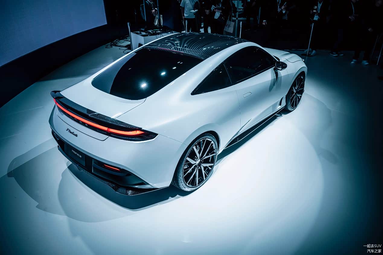 全新Prelude的车尾呈现出细长的贯穿式尾灯设计,尾灯下方还有“Prelude”的手写字样,颇有某德系跑车的风味,而车顶似乎是碳纤维材质,以降低车重。
