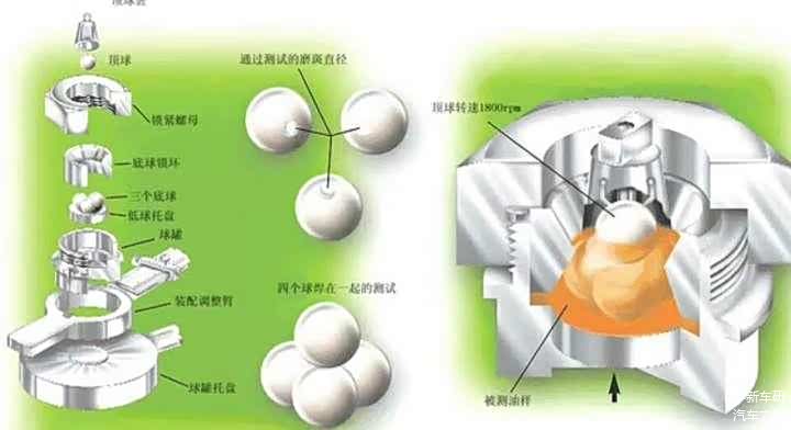 ⑩四球磨损检测使用全自动四球机进行,能够精确定义和控制如温度、压力、转速和检测时间等试验条件,通过对比磨斑直径大小来评定机油在不同工作环境下的抗磨性能。