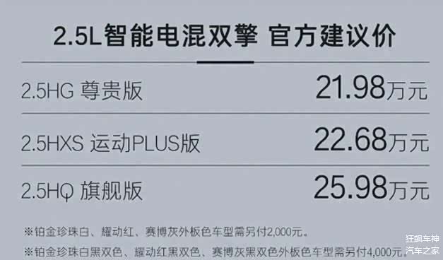 全新广汽丰田凯美瑞2.5升混动版!这款车已经上市了,价格区间在21.98万到25.98万元之间,有3款配置可选。