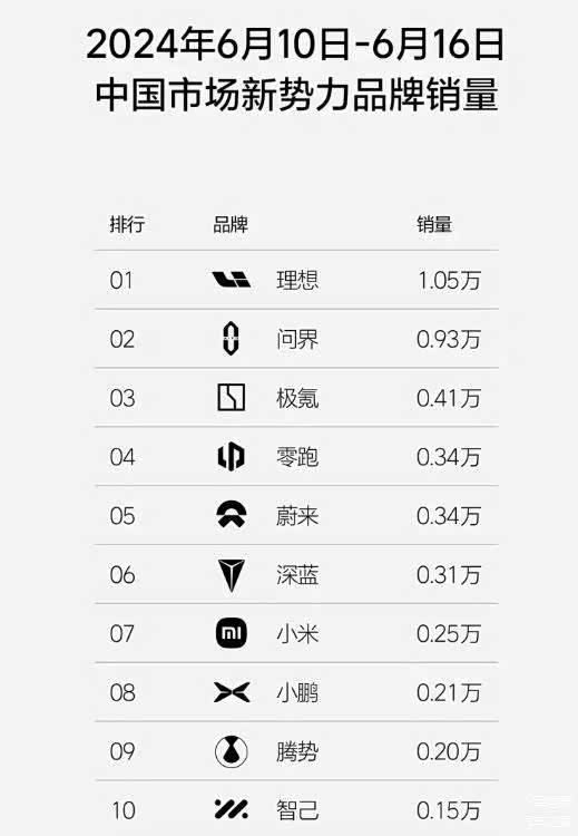 值得一提的是,在第24周(6月10日至6月16日)的销量数据中,问界汽车达到了0.93万辆的佳绩,且已连续三周交付量同比增长。这一数字不仅正逐步缩小与竞争对手的差距,更预示着问界汽车有望在接下来的市场竞争中占据更加有利的位置。