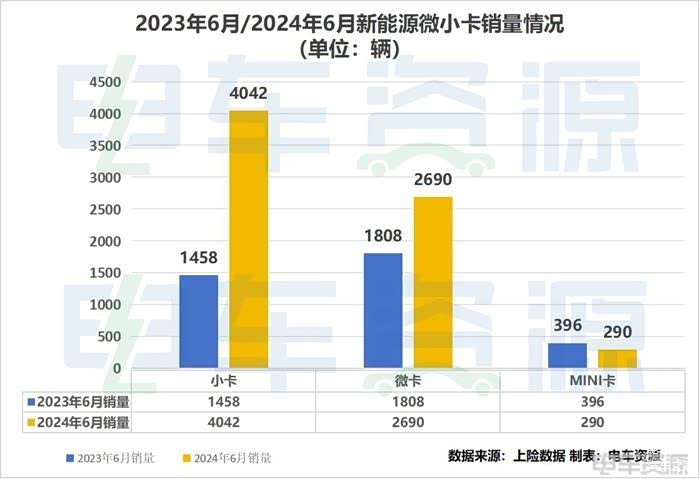 据电车资源统计,6月我国新能源物流车销量达38056辆(不含物流重卡、皮卡),同比增长72.08%,环比下降6.09%。其中,新能源微小卡(含MINI卡)合计销量7022辆,同比增长91.70%,环比下降18.55%,占当月新能源物流车总销量的18.45%。