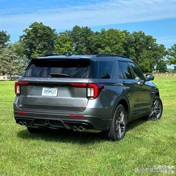 车身侧面,得益于运动包围的加入,探险者ST看起来更加修长而动感。内嵌式腰线设计赋予车身侧面更强的力量感,与丰田赛纳虽有几分神似,但在细节处理上更显硬朗与霸气。轮眉与锻造式轮毂的搭配,更是将运动氛围推向高潮,让人一眼便能感受到这款车的非凡性能。车尾部分,尾灯设计同样匠心独运,横向LED灯带与竖排方形光源的组合,不仅提升了车辆的辨识度,更赋予了车尾独特的轮廓感。双边双出的四排气布局,更是将运动基因展现得淋漓尽致。