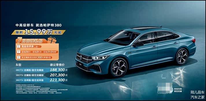 由此可见,在这个7月限定,不容错过的好时机里,选购一部德系B级车,想要高性能、高配置、高性价比,当然要选15.99万起的帕萨特380啦!