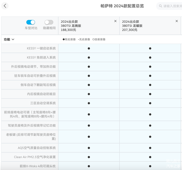 让用户低价享受380TSI高功澎湃动力的同时,帕萨特380在产品配置上毫不缩水。