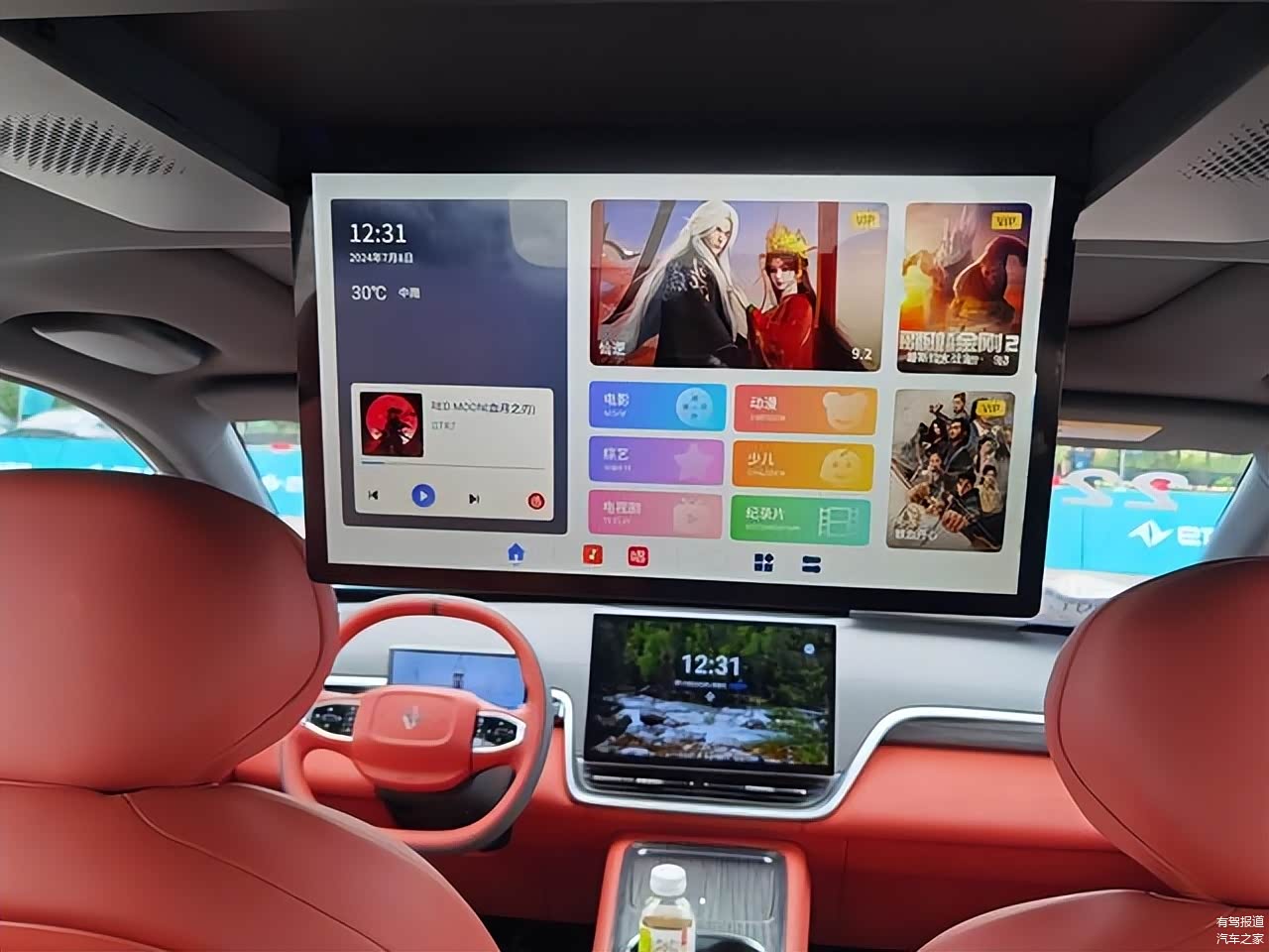 除此之外,奕派eπ008还能自定义场景模式,因需而变,打造最适合用户日常使用习惯的车内环境。中排车顶搭载15.6英寸智能娱乐屏,可实现无线投屏、一键飞屏等功能,配合全车20个扬声器和7.1.2声道的WANOS全景声环绕音响,让车内随时秒变“家庭影院”。