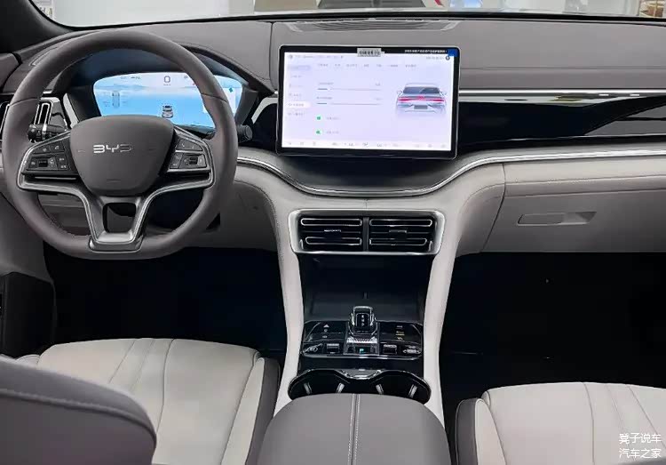 这款新车的内部装饰主要是引入了创新的配色方案。尽管官方尚未公开具体的名称,但车内的设计布局非常整洁。在细节上,使用了亮银色、黑色和灰色的装饰条以增强其质感。12.3英寸的液晶仪表盘展示了清晰的数据,而多功能方向盘的设计则显得圆润,两侧还配备了有序的物理按钮。中控屏幕上除了传统的数字和图标之外还有一个新的设计元素——悬浮式中控屏,它可以在汽车行驶过程中自动打开或者关闭,让驾驶变得更加便捷舒适。中控屏采用了悬浮式设计,其尺寸可以是12.8英寸或15.6英寸,并且内部搭载了Dilink 5.0车机系统。UI界面的设计更为精美,从而使得人与机器的交互体验更为出色。中控操作台上配置了触摸屏和触控板,两者都采用全触控技术,在功能上实现一键启动和一键关闭。操作台的区域布局整齐,电子换挡杆的形状圆润,两侧都配备了整洁的物理按键。