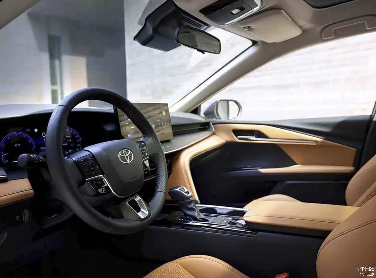 内饰的话,第9代凯美瑞的造型更加简洁,12.3英寸的中控屏,内置高通骁龙8155芯片,提供12GB+128GB内存,整体的流畅度有保障。
