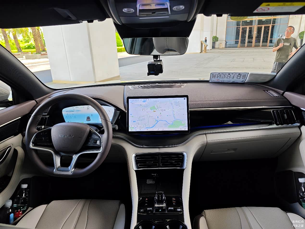 内饰方面,也延续了老款的设计,配备了12.3英寸液晶仪表和15.6英寸自适应旋转PAD,车机系统依然是DiLink,不过界面UI进行了优化。