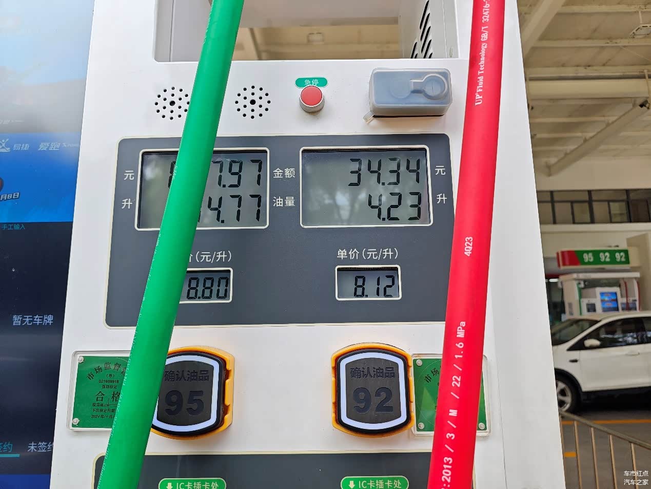 在能耗测试之前,我们先在深圳坪山燕子岭加油站将油加满至加油口平齐,此时剩余电量21%,刚好处于系统的馈电状态。试驾线路从加油站出发,抵达杨梅坑停车场之后再折返,全程110km左右,包含了城市拥堵路段和高速,中途还遇到了短暂的大暴雨。