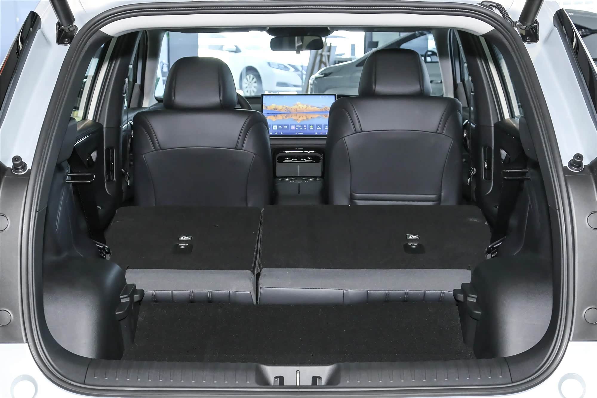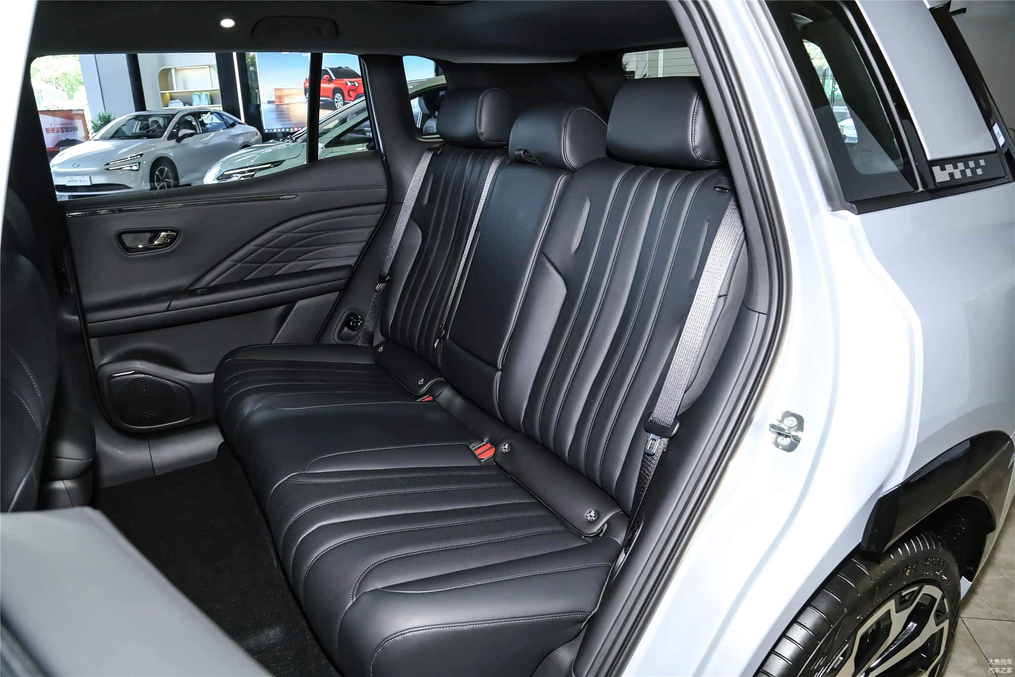 车尾部分的造型同样简洁大方,内凹的尾门设计增加了一些层次感,使得车尾看起来更加立体。尾灯则同样采用了竖式布置和前大灯相呼应。整体来看在颜值方面,第二代AION V还是能拿出手的,硬派风格中兼具了时尚气息,符合大多数人的审美。