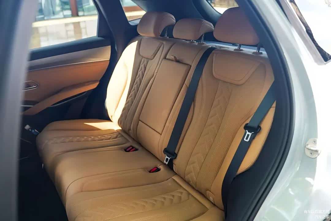 空间方面,身高1米85的体验者坐在后排还能轻松获得2拳的腿部空间。并且坐垫非常柔软,对大腿的承托也较为到位,久坐必也不会感觉太累。