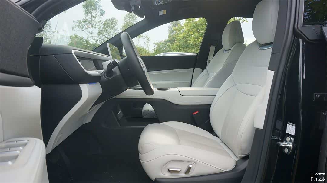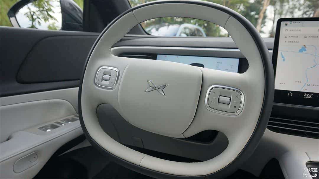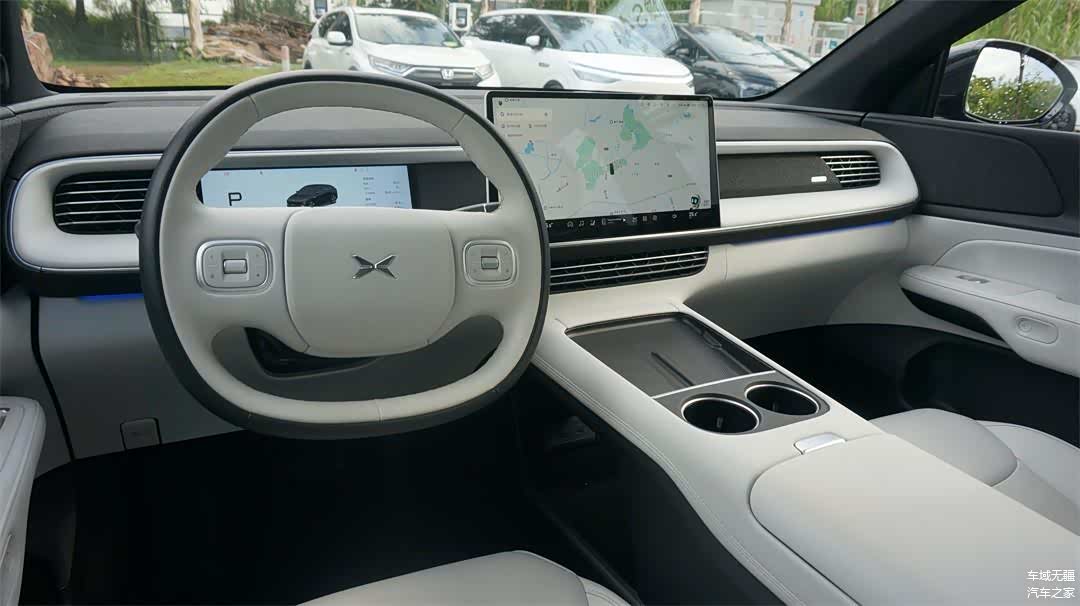 不过,相比起P7更前卫、更科幻的内饰设计,G6的内饰风格相较之下有所收敛,更加贴近于家用化的风格。首先,中控台的整体造型,采用了更加简单的图形元素,以及环状的中控台造型,中央的黑色部分内嵌了仪表盘,而外侧部分则是包裹了皮革。电子空调出风口采用了镀铬条进行修饰,和当下千篇一律的简洁化风格搭配大屏的设计相比,拉开了一定程度的差异化。不过,没有副驾手套箱是一个不小的遗憾。