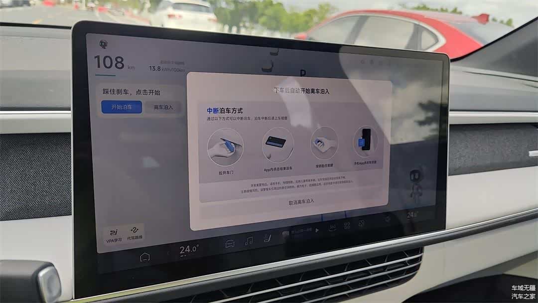 自动泊车方面也有了新的功能迭代——“离车泊入”功能。传统的自动泊车,在识别到车位之后,需要驾驶员在车上操作,让车辆完成泊入之后才能离车,亦或者确认车位之后,在车外通过手机操作完成泊入。而新增的“离车泊入”功能,则允许用户在确认车位之后直接离车,此后让系统完成剩余的泊入过程,用户离车的过程可以做到更加便捷。