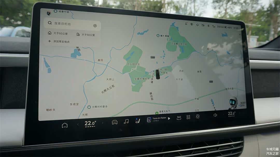 车机系统的风格,相比起早期P7的设计更加大气简约,以地图为主页,Dock栏设置在了首页底部,带有空调、设置页、多媒体、座椅、360影像等功能入口,基本上能满足日常绝大部分功能的快捷调用,美中不足在于缺少了充电口盖的开关。